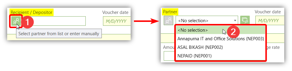 Bénéficiaire/payeur dans WINPACCS Accounting/Cashbook |